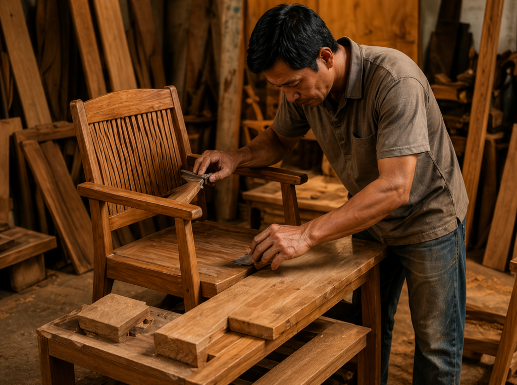 Setiap potongan kayu dipilih dengan cermat, setiap sambungan dirakit dengan presisi, dan setiap detail diproses dengan penuh ketelitian. Karena bagi kami, furniture bukan hanya tentang produk, tapi tentang karya yang bisa dinikmati bertahun-tahun.
